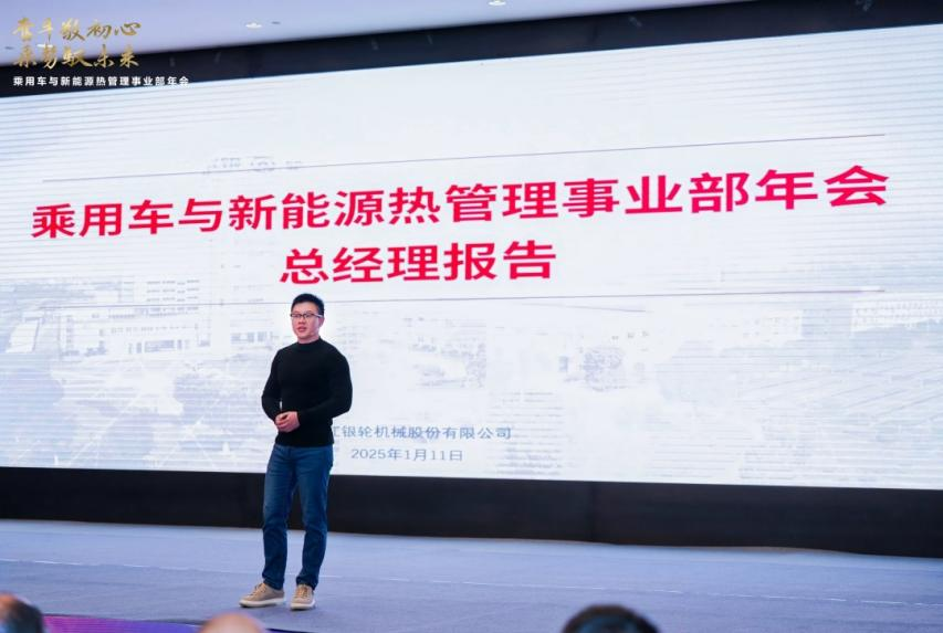 2025年1月11日,乘用車與新能源熱管理事業部2024年年會在天臺隆重舉行。年會以天藍色為主色調,彰顯了事業部堅定全球化發展的決心和信心。會場布局開放,主題鮮明,“奮斗敬初心、乘勢馭未來”的宣傳標語隨處可見,營造出大氣、莊重、嚴肅的氛圍。